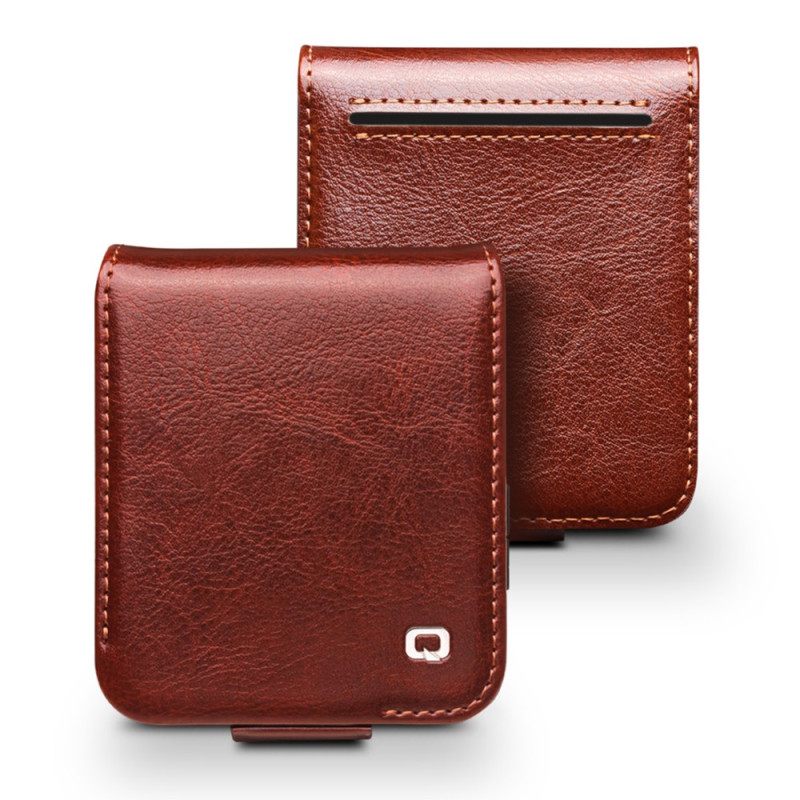 Ontdek onze hoes van echt leer voor de Samsung Galaxy Z Flip 7 FE / Z Flip 6. Deze hoes combineert elegantie en functionaliteit en biedt optimale bescherming met zijn flip-design, kaartsleuven en magnetische sluiting.