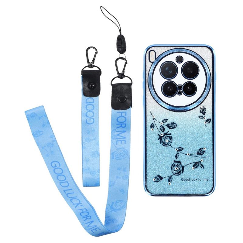 Hoesje Vivo X300 Pro Bandjes Met Bloem En Strass-steentjes