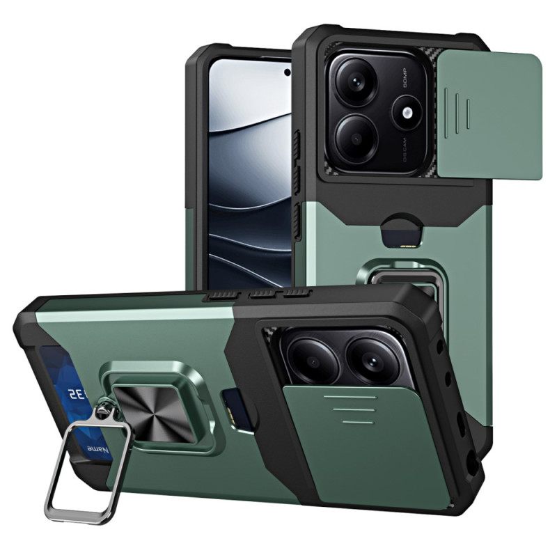 Geniet van unieke functies zoals een verschuifbare lenscover, een ingebouwde standaard en een kaartsleuf...- Duurzaam hybride materiaal: Deze hoes is gemaakt van zacht TPU en hard PC en biedt uitstekende duurzaamheid en effectieve schokabsorptie om uw apparaat te beschermen.