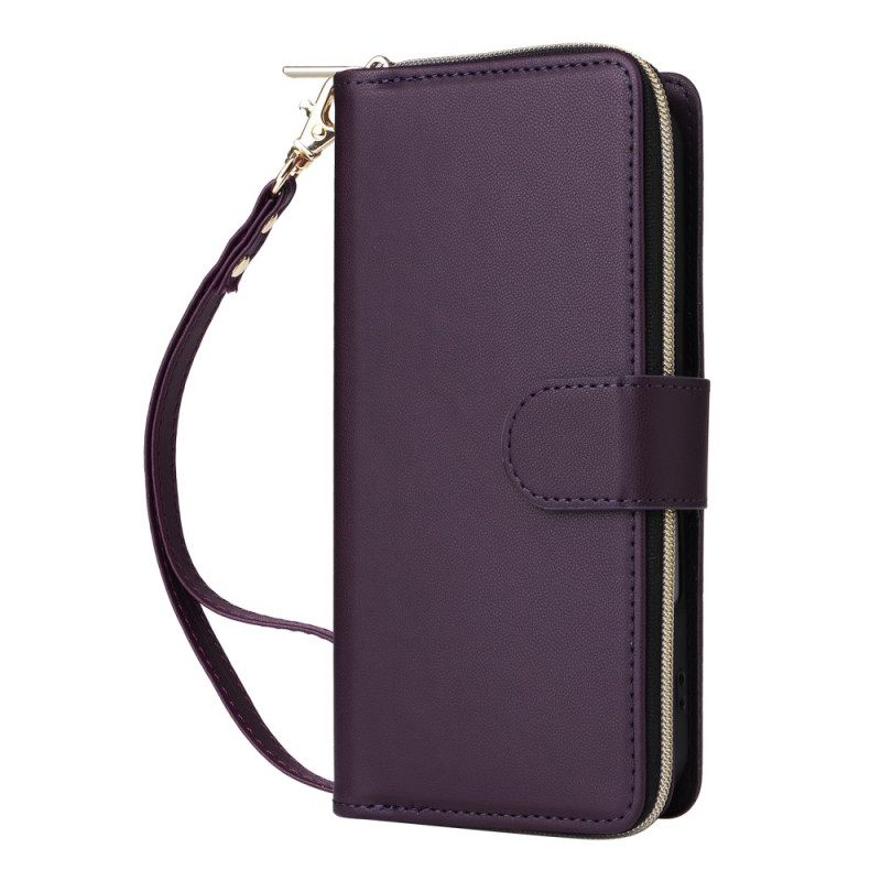 Combineer elegantie, functionaliteit en bescherming met deze hoogwaardige PU-leren portemonneehoes voor de iPhone 17. Het verfijnde ontwerp is voorzien van een zachte TPU-binnenkant om schokken te absorberen en uw smartphone effectief te beschermen. De hoes heeft 9 kaartsleuven, een groot vak met ritssluiting voor bankbiljetten en kleingeld, en een afneembare polsband voor veilig dragen.