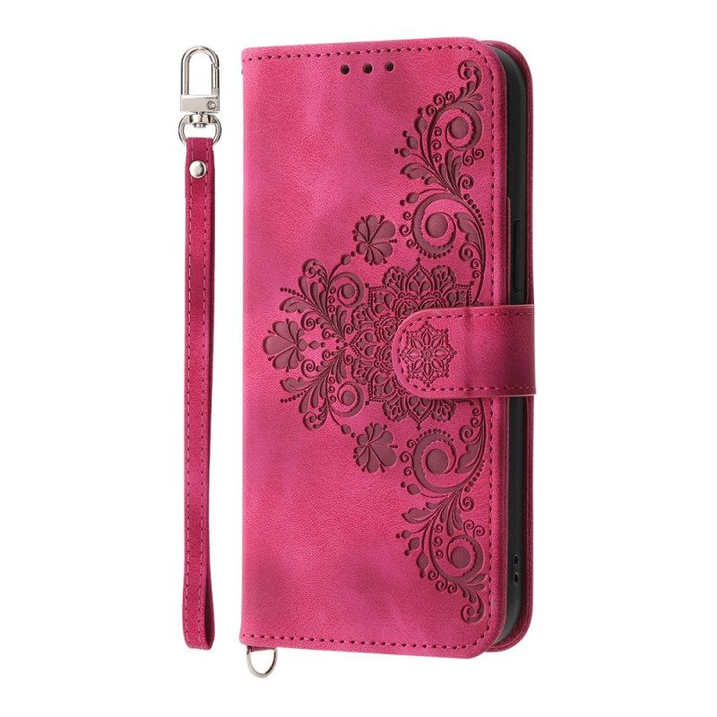 Leren Hoesje Voor Realme 14 Pro Plus 5g Kanten Suède-effect Met Riem En Schouderband