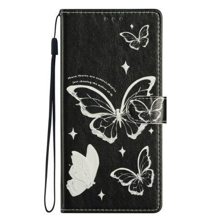 Leren Hoesje Xiaomi Redmi Note 15 5g Zwart-witte Vlinders Bescherming Hoesje